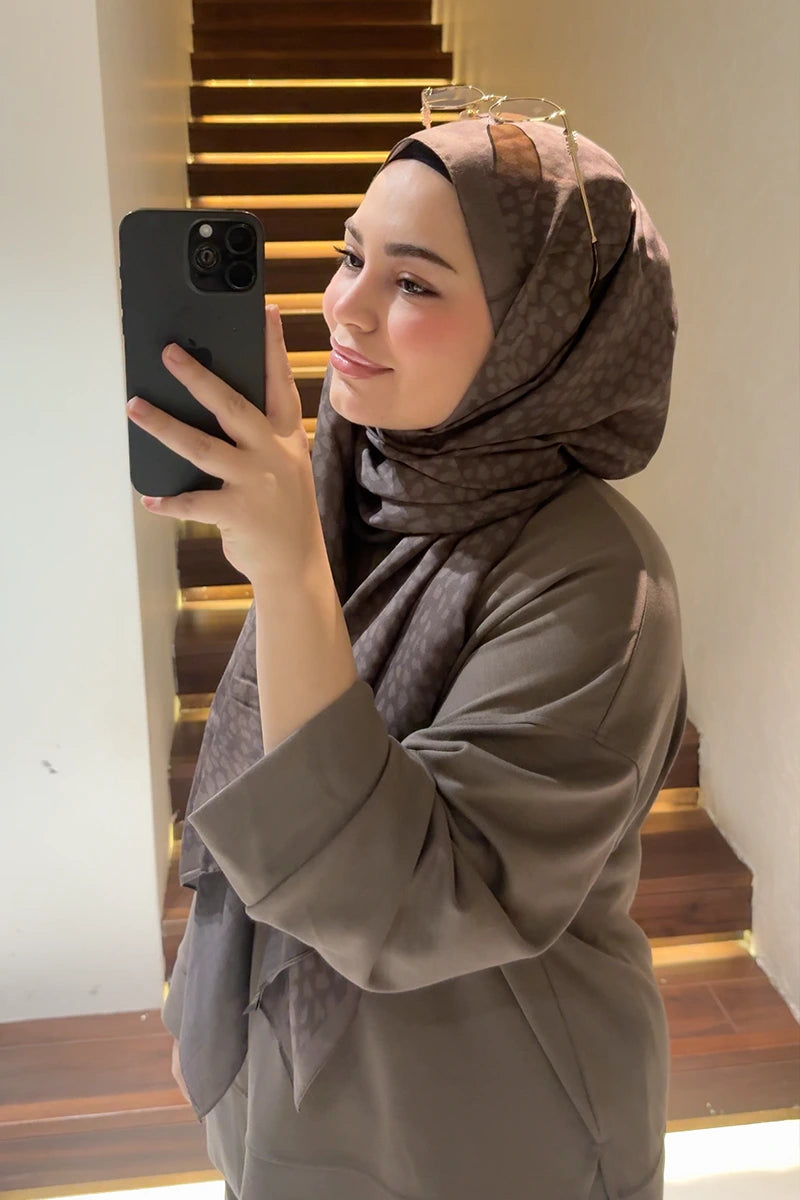 Çift Taraflı Premium Şal Ceylan Desen - Kahverengi