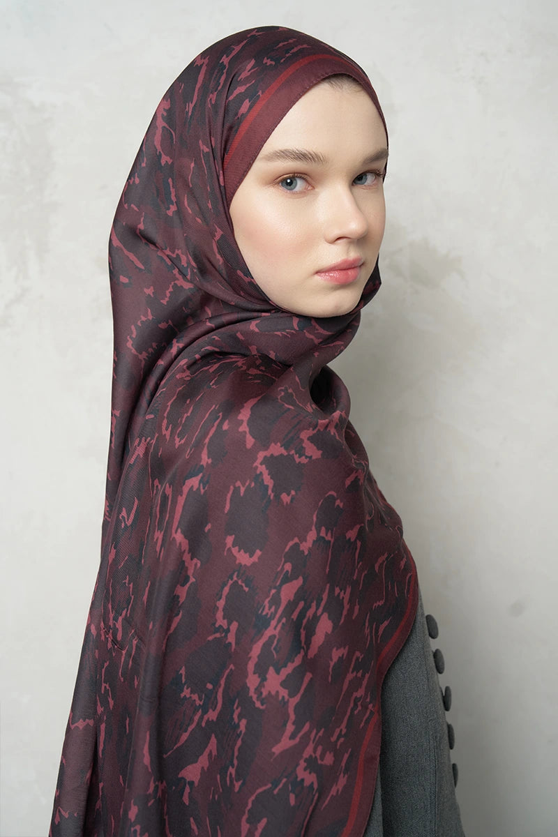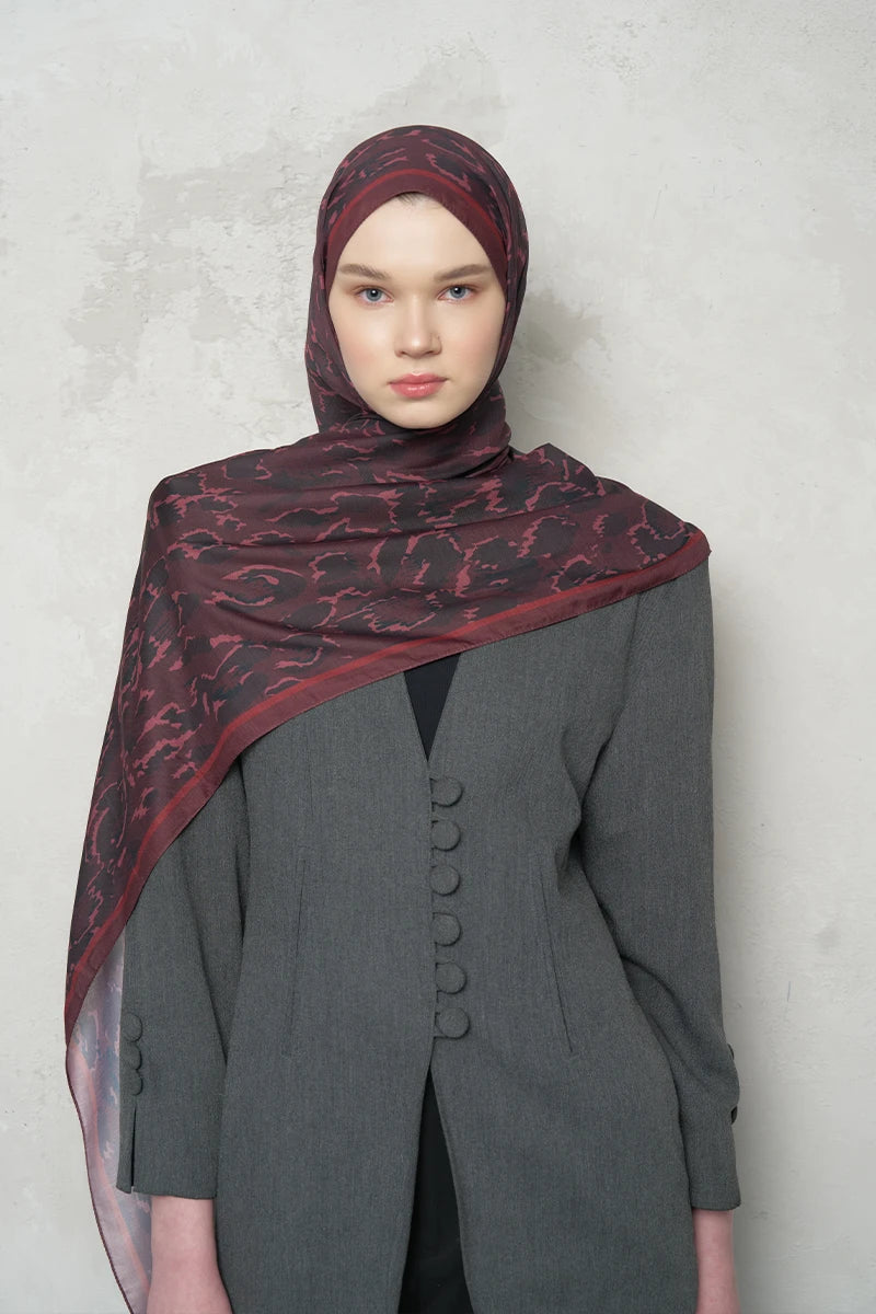 Leopar Desenli Pamuk Dokulu Şal - Bordo