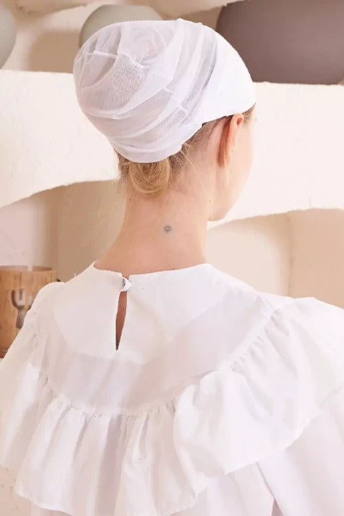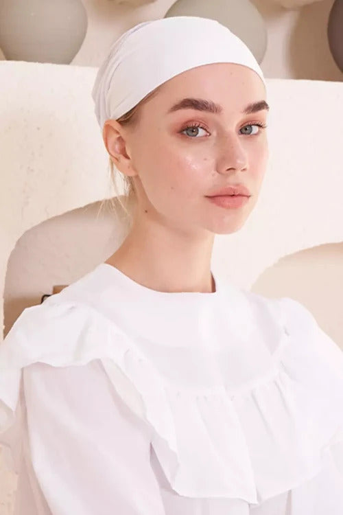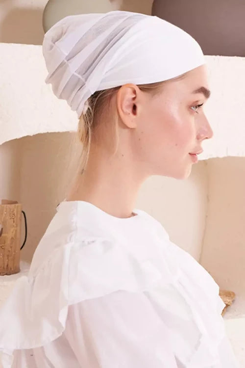 Dikişsiz Fileli Düz Bone - Beyaz
