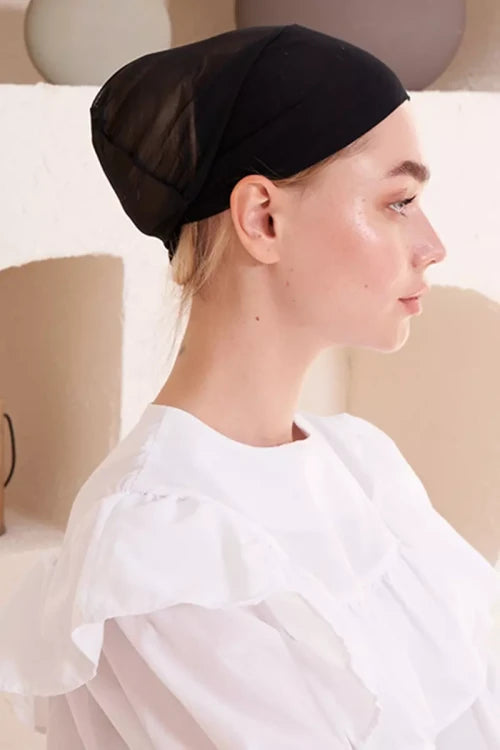 Dikişsiz Fileli Düz Bone - Siyah