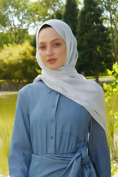 • Elegance Etnik Desen Jakar Şal - Gümüş