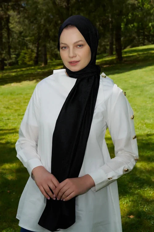 • Elegance Etnik Desen Jakar Şal - Siyah