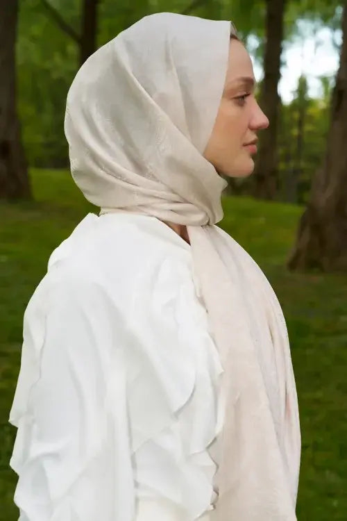 Elegance Lace Desen Jakar Şal - İnci