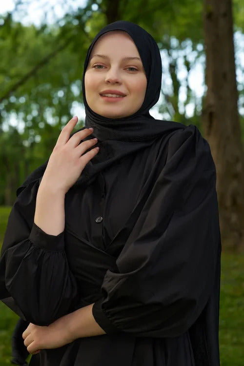 • Elegance Lace Desen Jakar Şal - Siyah