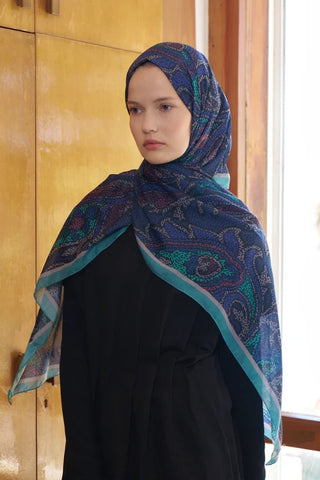 Kübra KOÇ Endless Bloom Desen Şal - Mavi