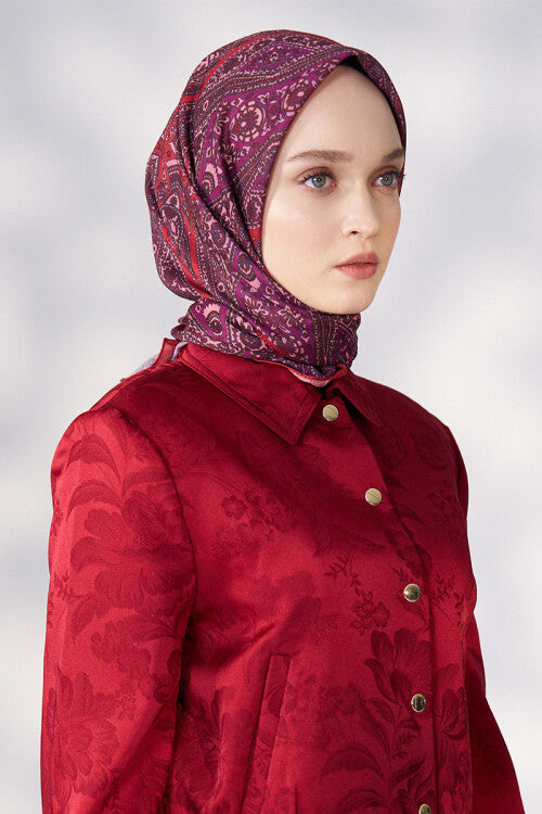 Daisy Glory Desen Eşarp - Kırmızı