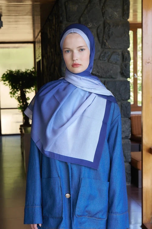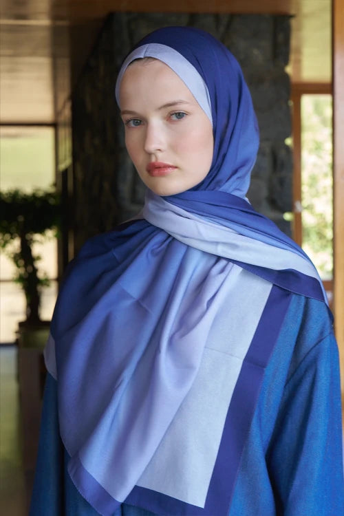 Beyza HURİ Fransız İpeği Degrade Desen Şal - Mavi
