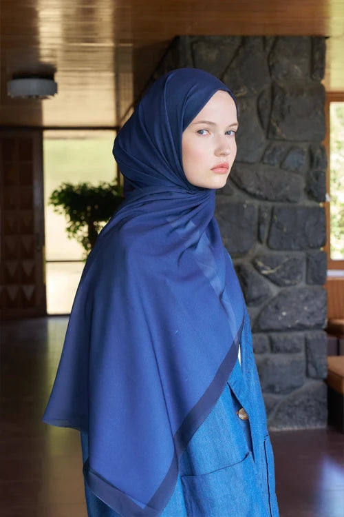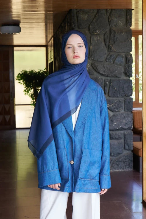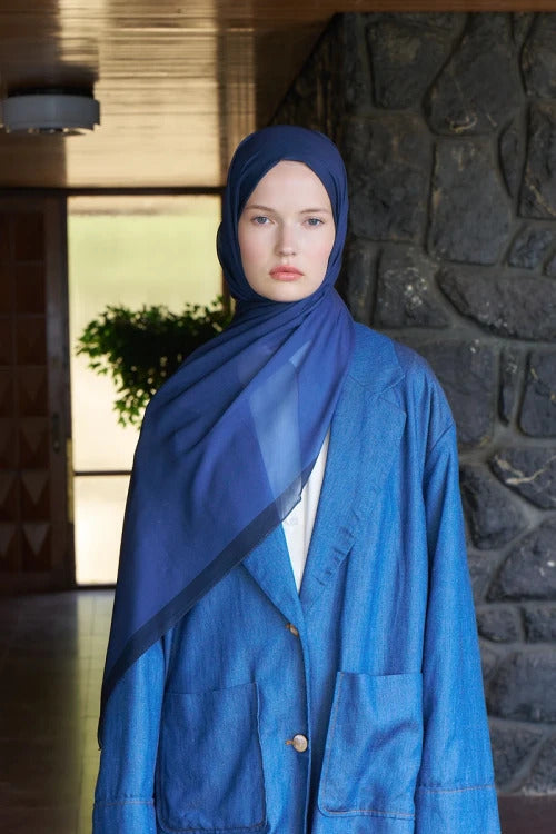 Fransız İpeği Degrade Desen Şal - Lacivert
