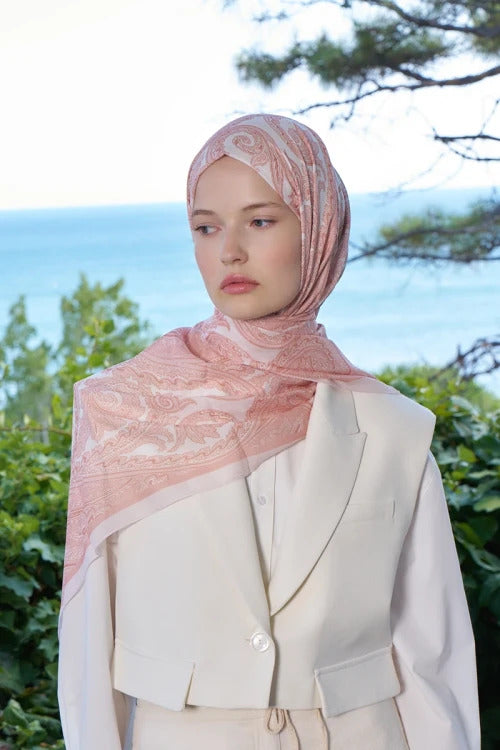 Fransız İpeği Saray Desen Şal - Yavruağzı