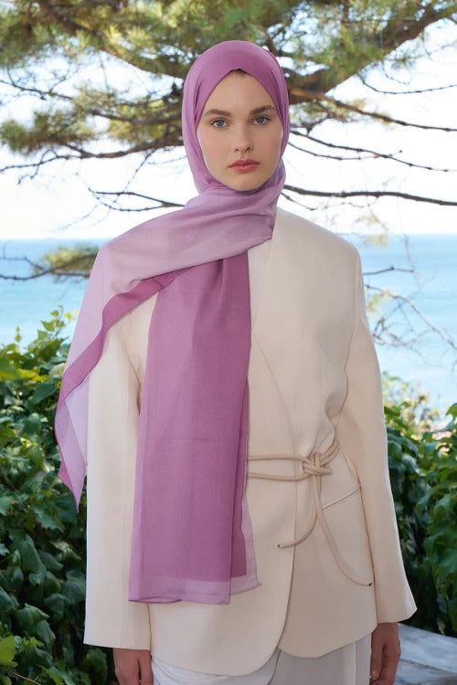 • Tuğba BAĞ Fransız İpeği Degrade Desen Şal - Pembe