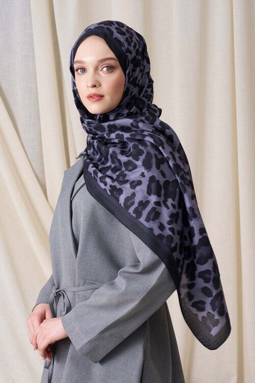 Kübra Kuş Historical Leopar Desen Şal - Siyah