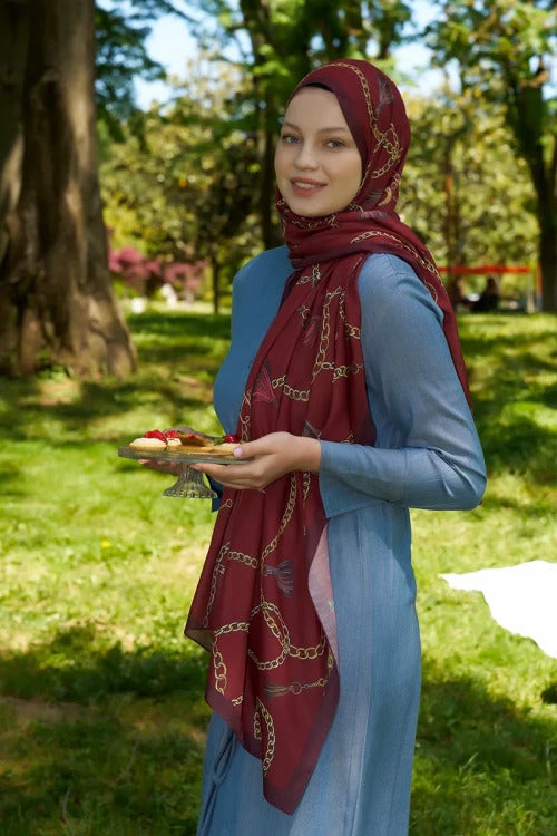 Ebrar Taş Hyper Zincir Desen Şal - Kırmızı