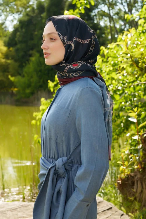 Hyper Zincir Desen Şal - Siyah / Bordo