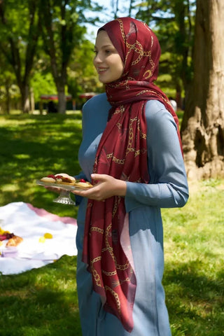 Hyper Zincir Desen Şal - Bordo