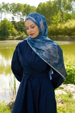 Feride Uludağ Crystal Flower Desen Şal - İndigo