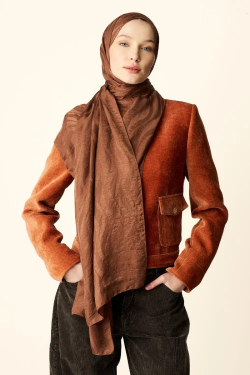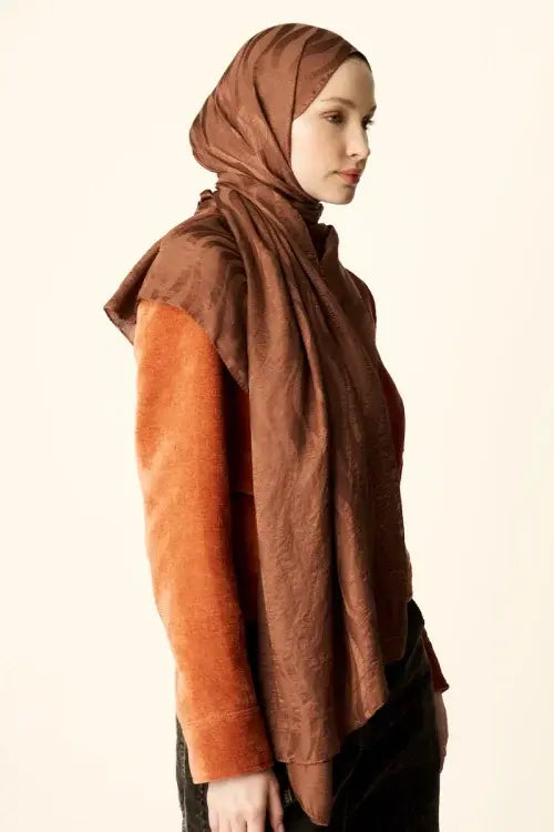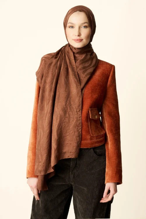 Premium Jakar Şal Dalga Desen - Kızıl Kahve