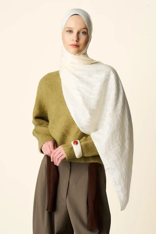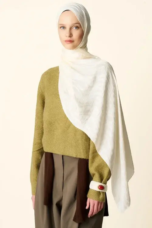 Premium Jakar Şal Dalga Desen - Krem