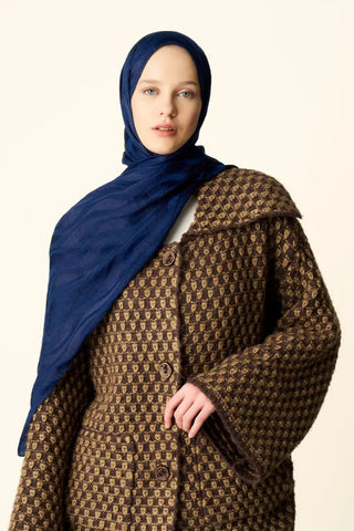 Premium Jakar Şal Dalga Desen - Gece Mavisi