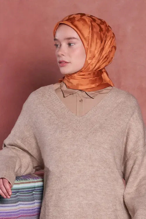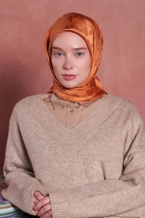 • İpeksi Jakar Safir Eşarp Kazayağı Desen - Şeftali