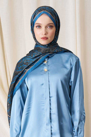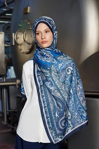 Tuba Bağ Historical Veloria Desen Şal - İndigo