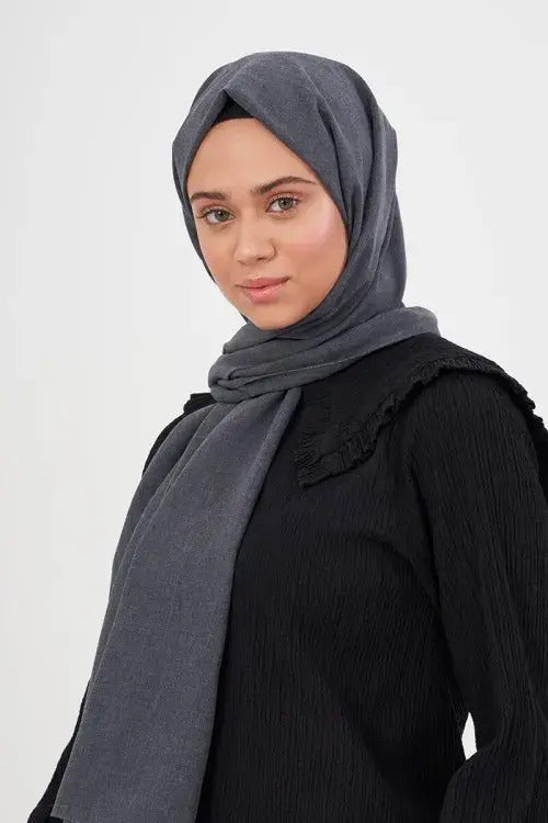 • Taşlanmış Pamuk Şal - Antrasit
