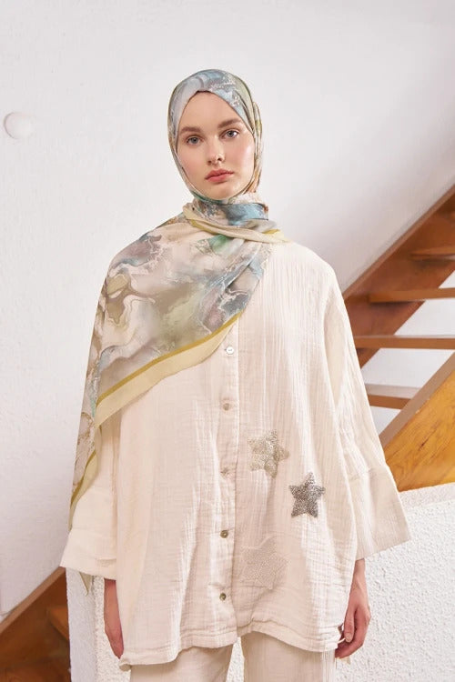Passionate Solstice Desen Şal - Yağ Yeşili