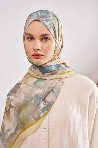 Passionate Solstice Desen Şal - Yağ Yeşili