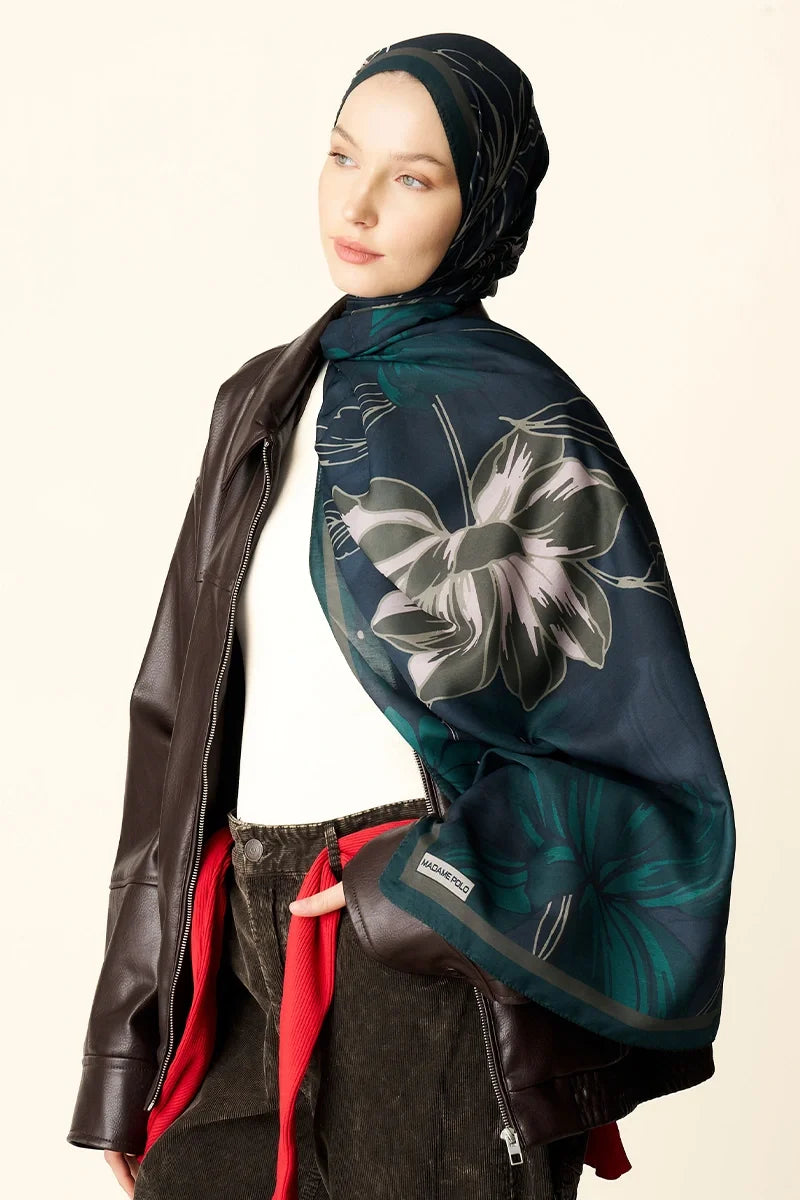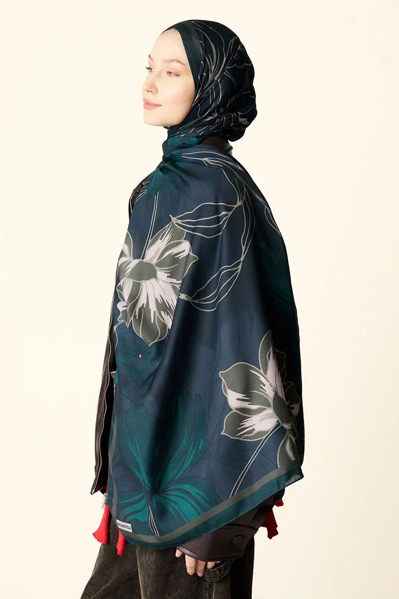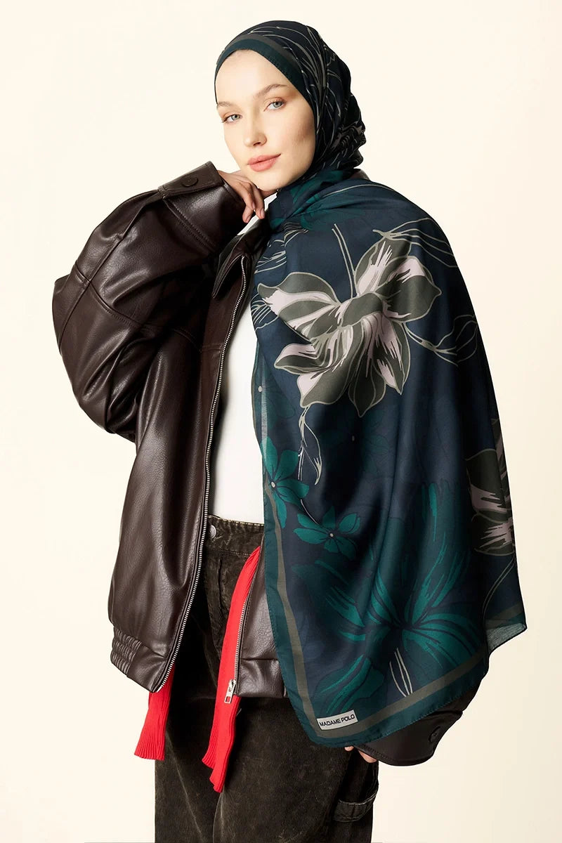 Amora Desenli Pamuk Dokulu Şal - Yeşil