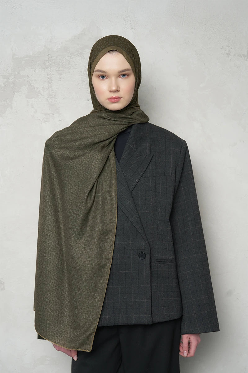 Çift Taraflı Premium Şal Leopar Desen - Yağ Yeşili