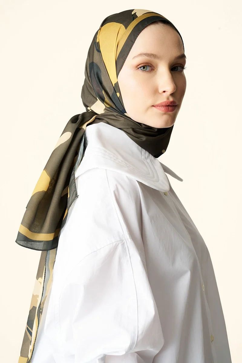 Liva Desenli Pamuk Dokulu Şal - Yeşil