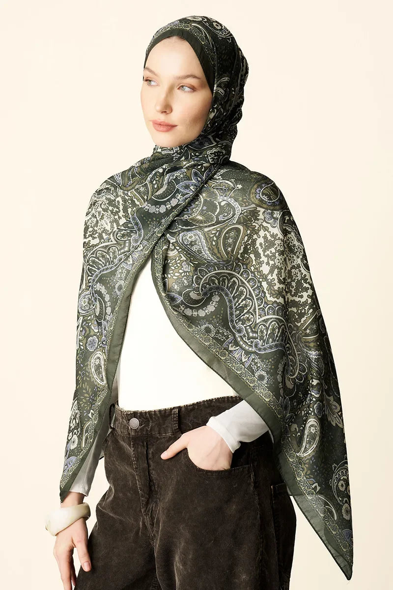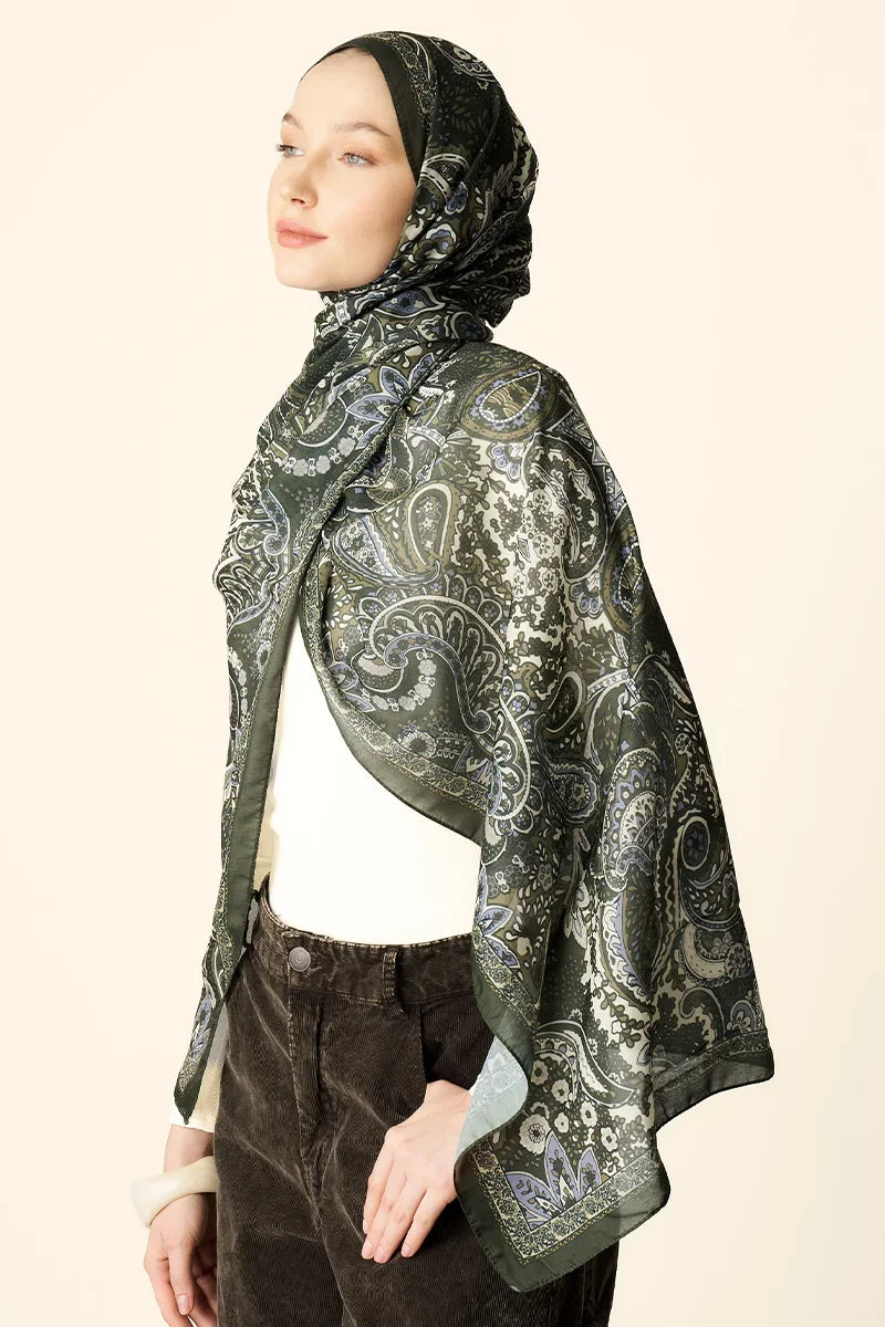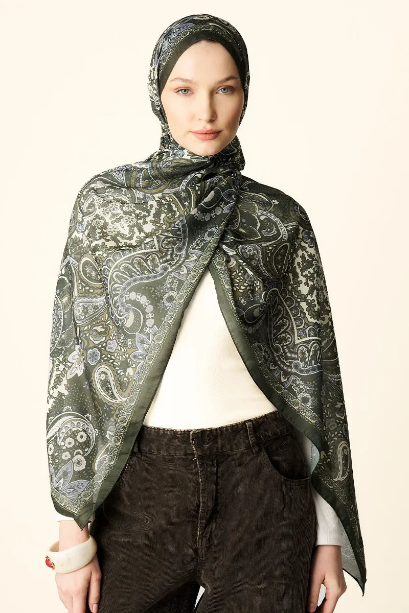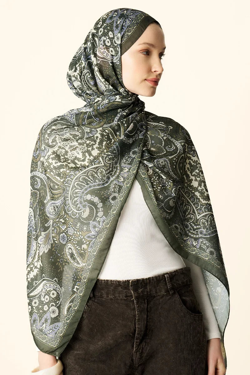 Zaria Desenli Pamuk Dokulu Şal - Yeşil