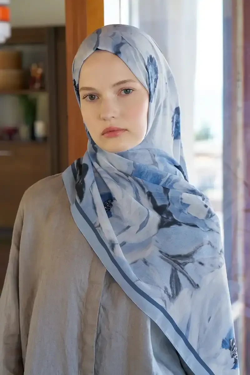 Kübra KOÇ Endless Bloom Desen Şal - Mavi