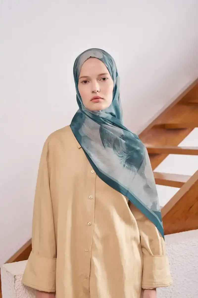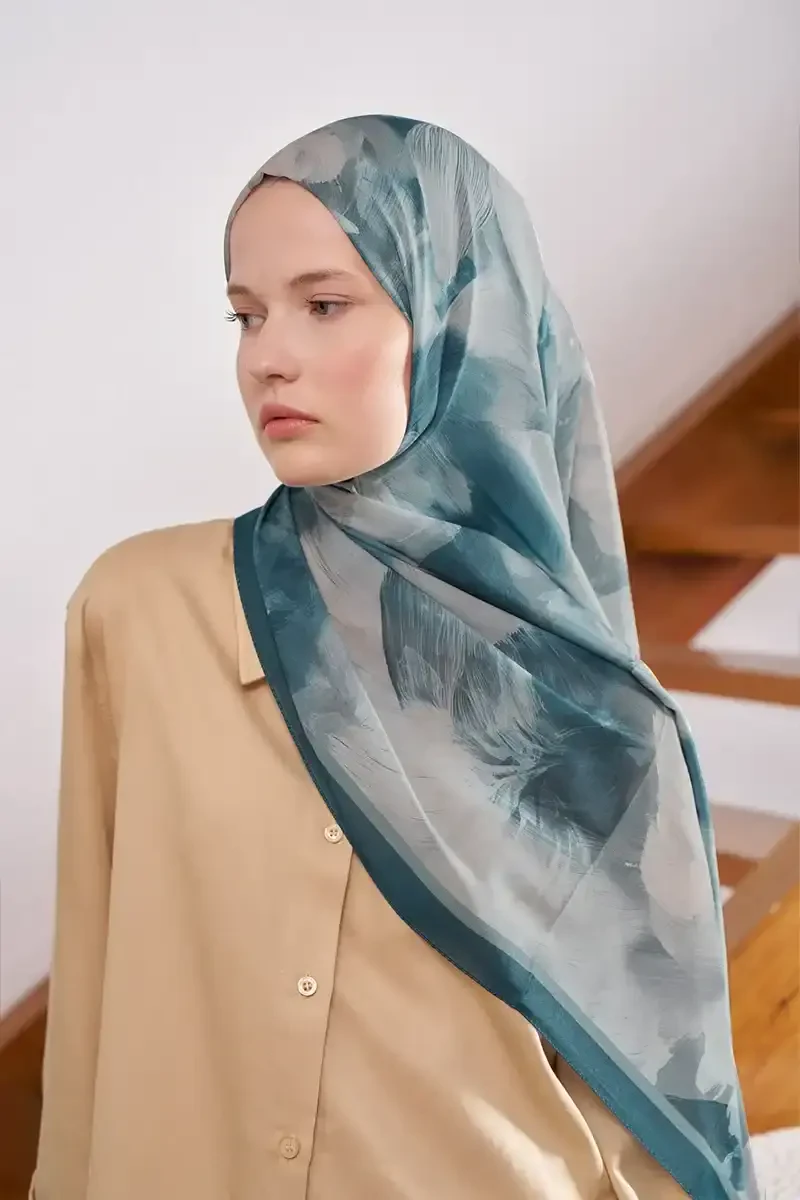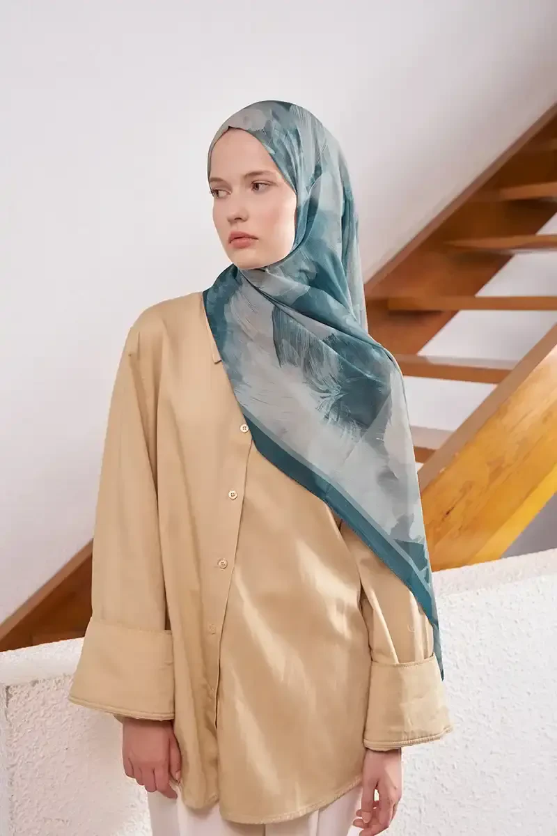 Fransız İpeği Ahenk Desen Şal - Petrol