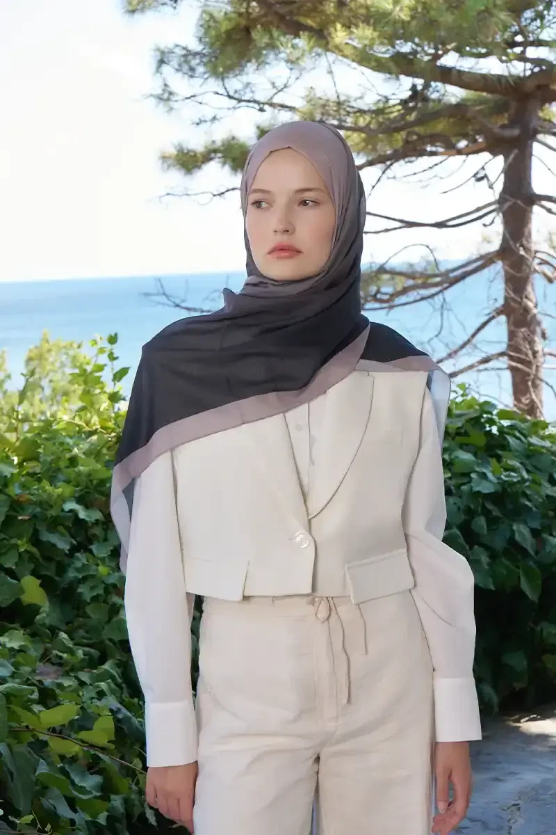 Fransız İpeği Degrade Desen Şal - Siyah / Vizon