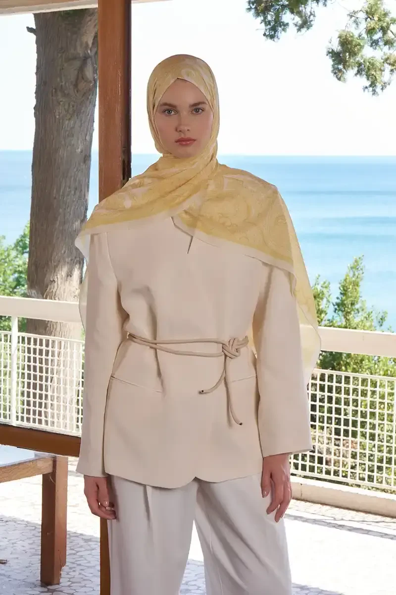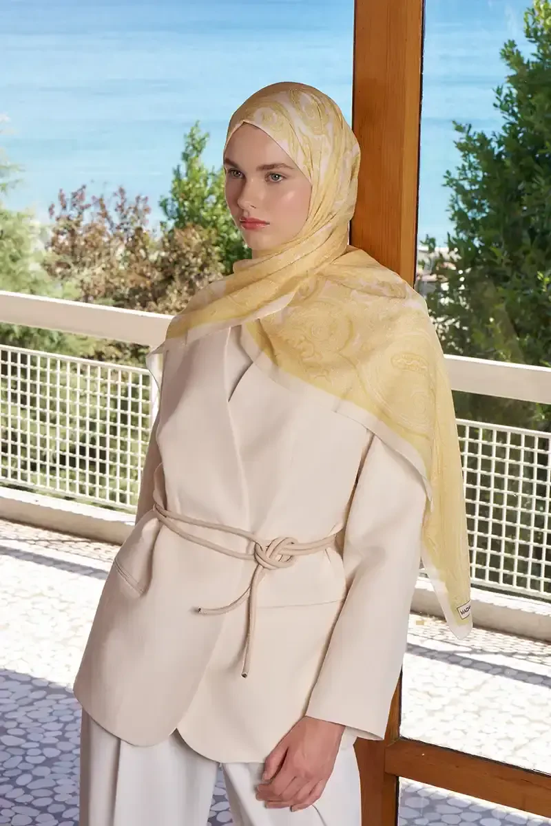 Tuğba BAĞ Fransız İpeği Saray Desen Şal - Sarı
