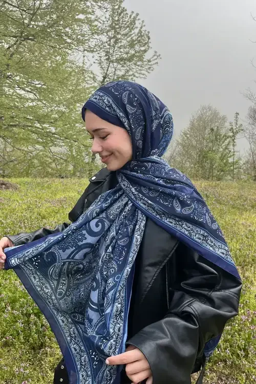 Historical Dionessa Desen Şal - Gece Mavisi