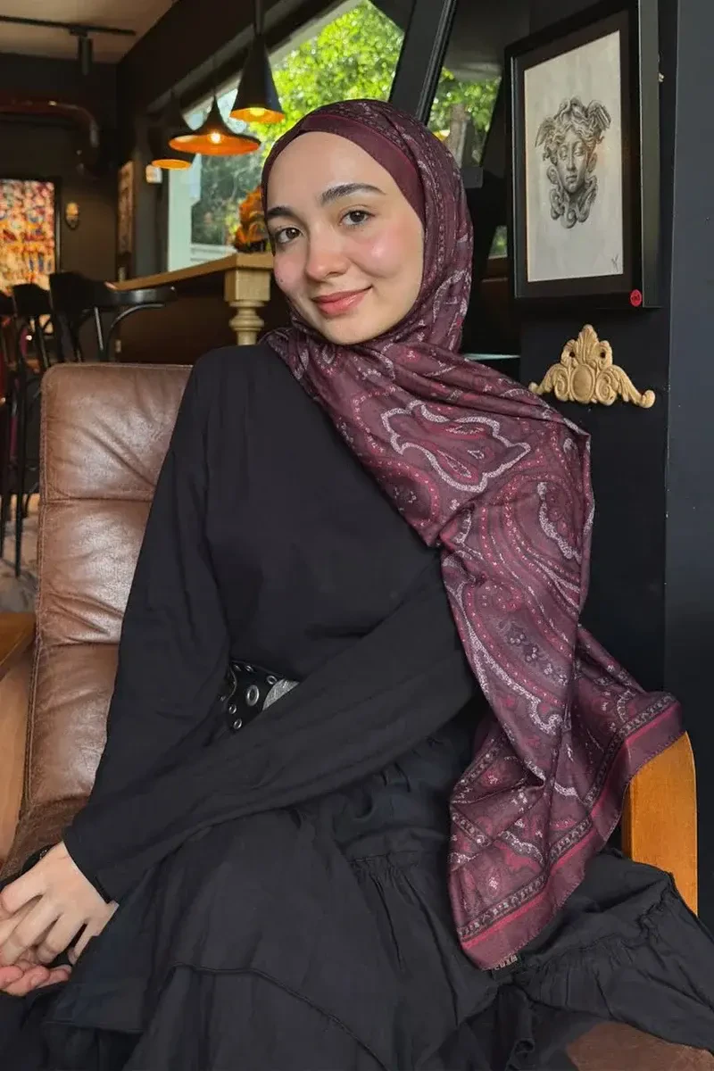Kübra Kuş Historical Victorian Desen Şal - Bordo