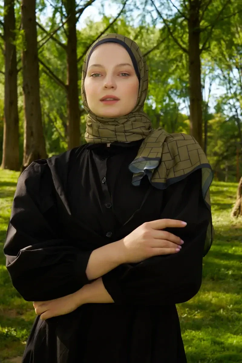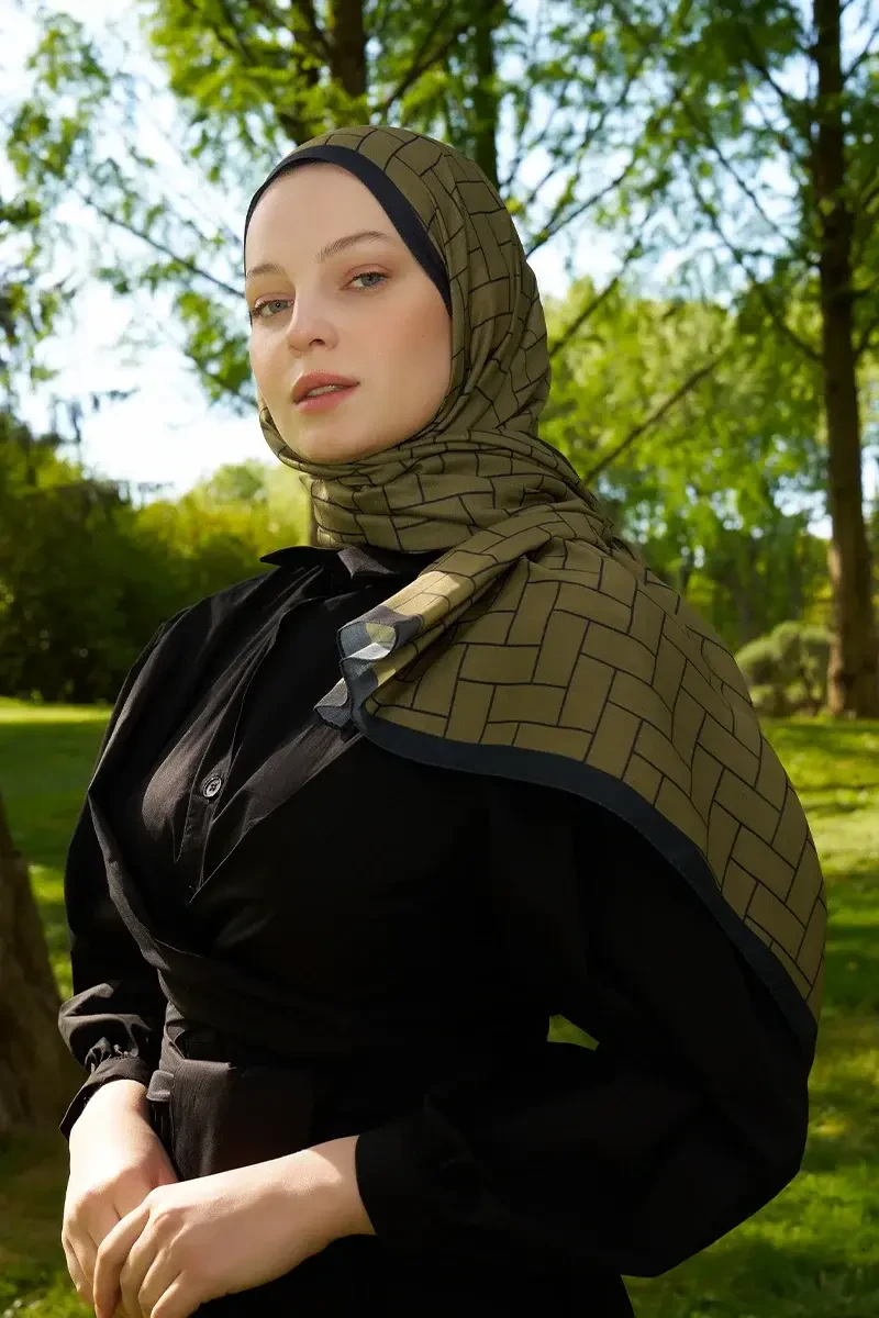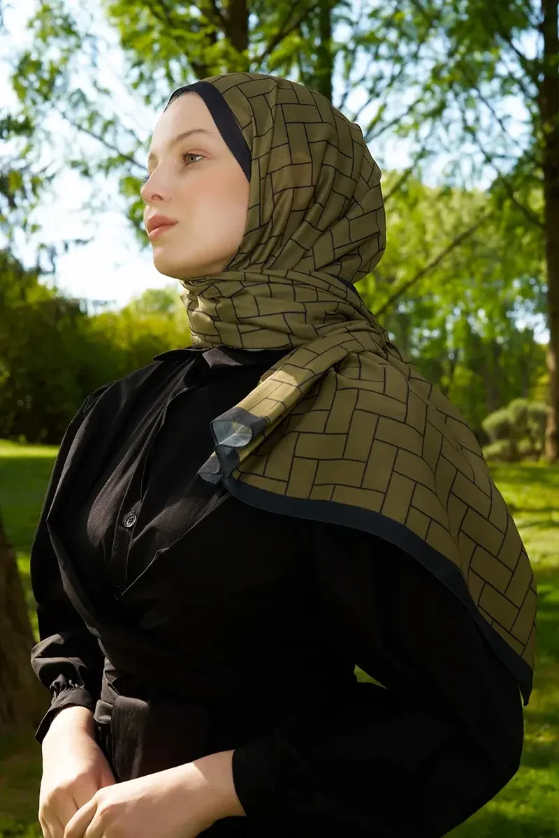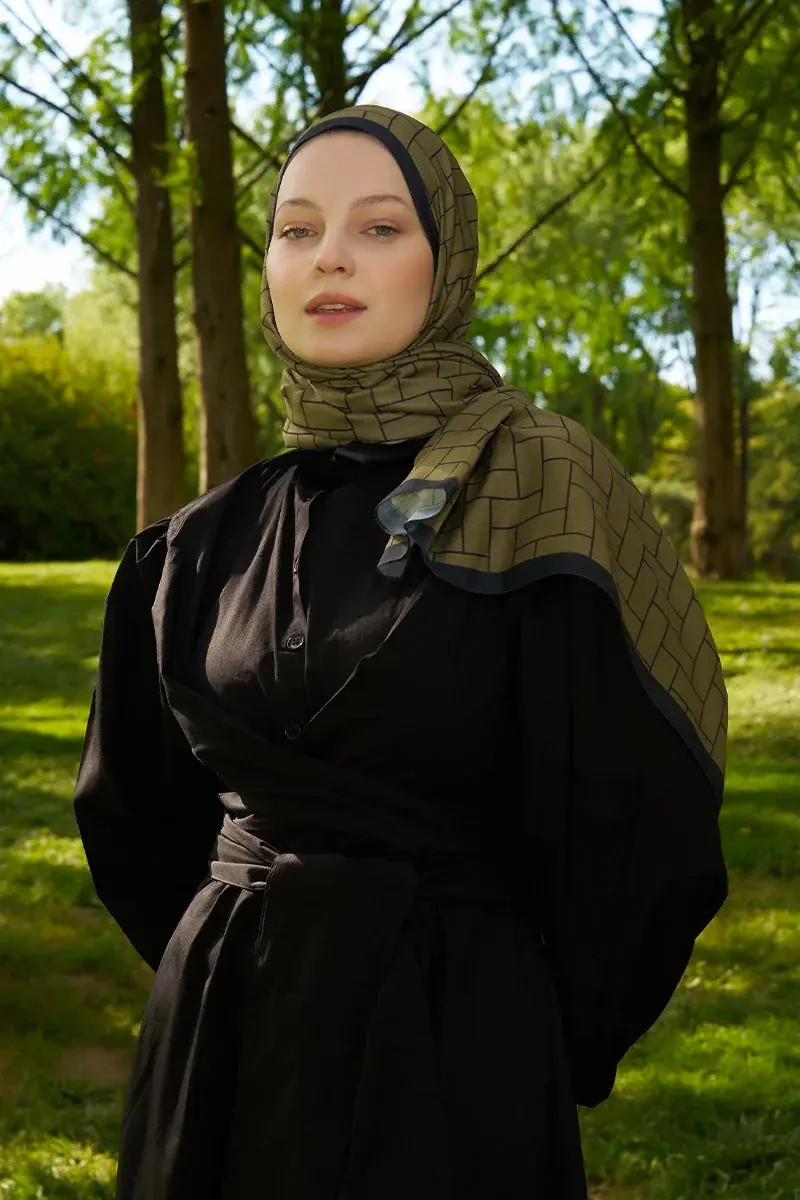 Hyper Geometrik Desen Şal - Yağ Yeşili