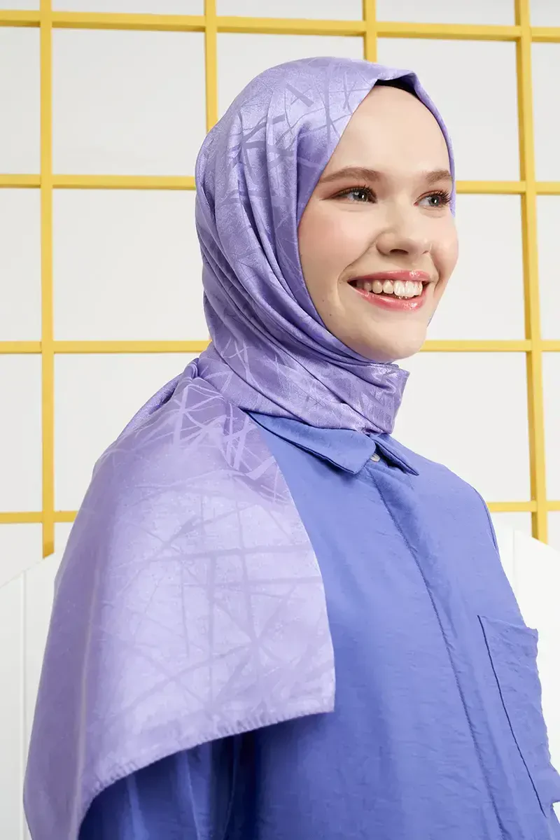 Büşra Fethi İpeksi Jakar İtalyan Şal Çizgi Desen - Violet