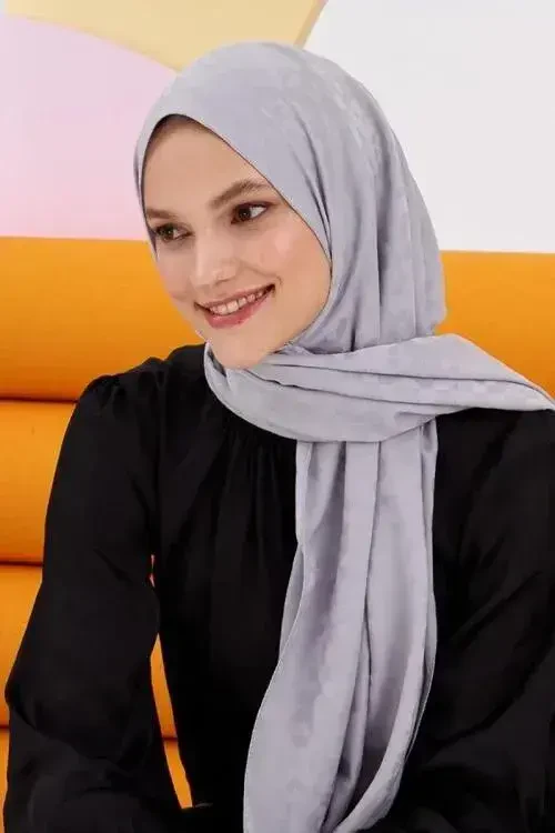 Kübra Koç İpeksi Jakar Lara Şal Blok Desen - Gri
