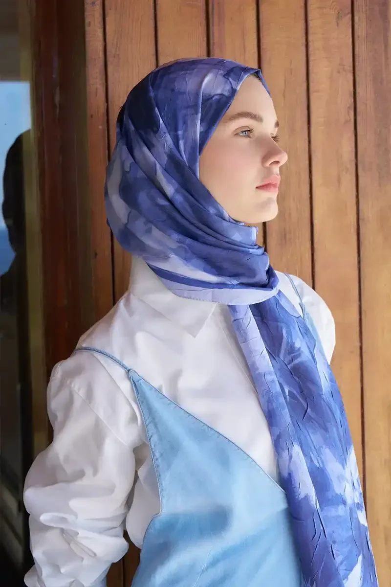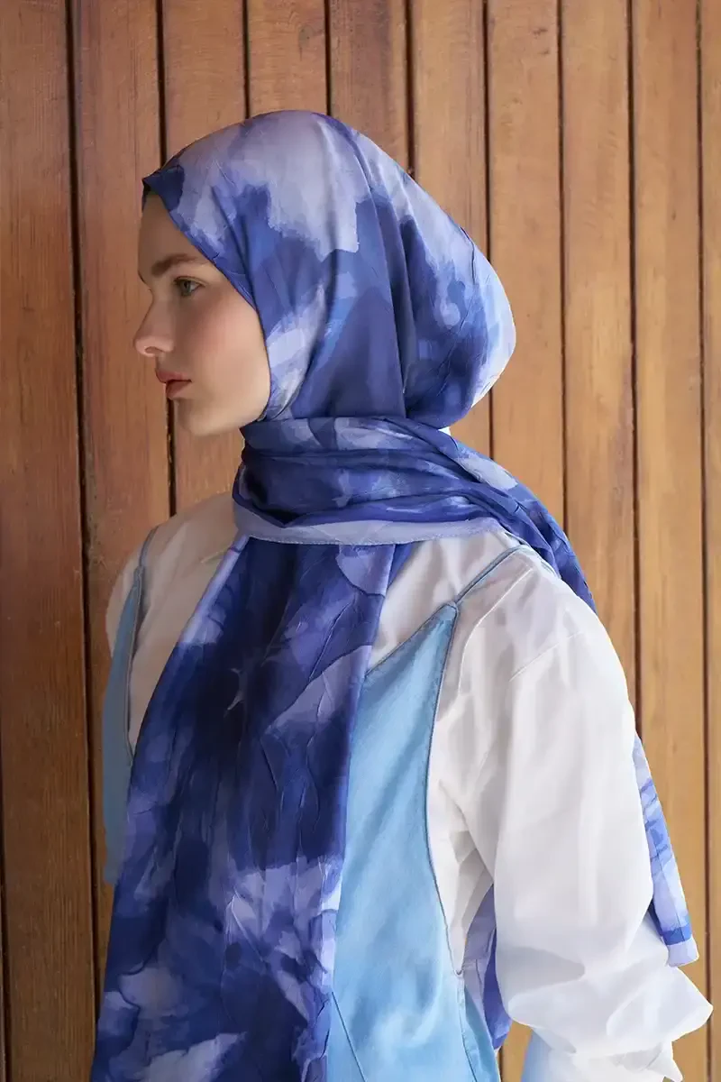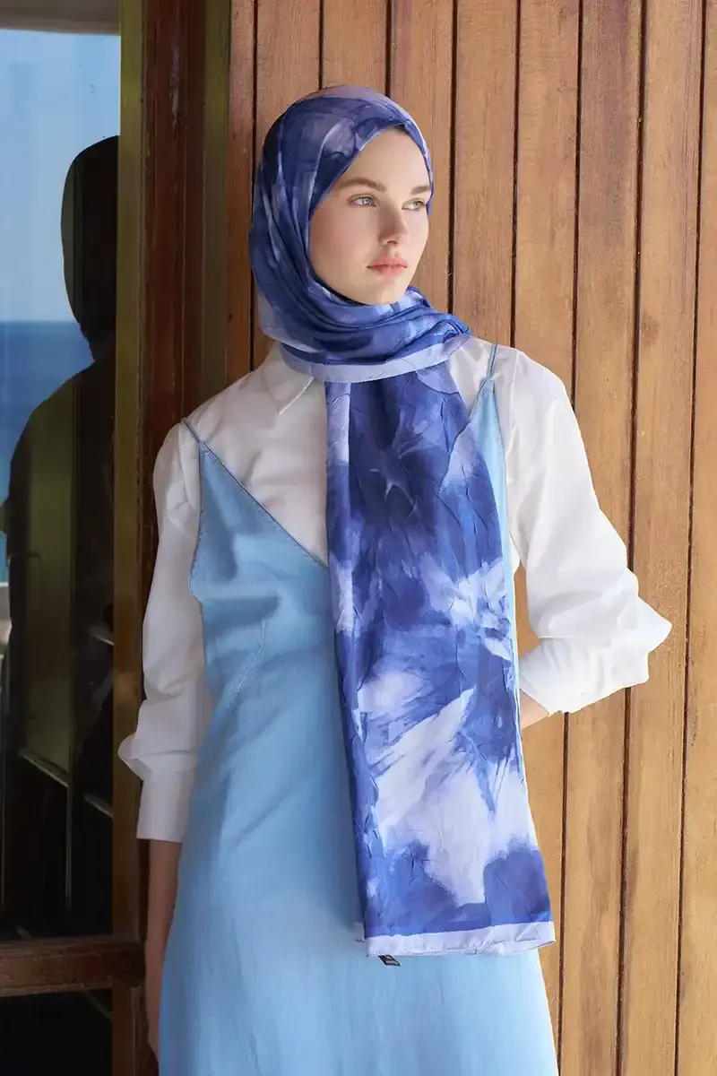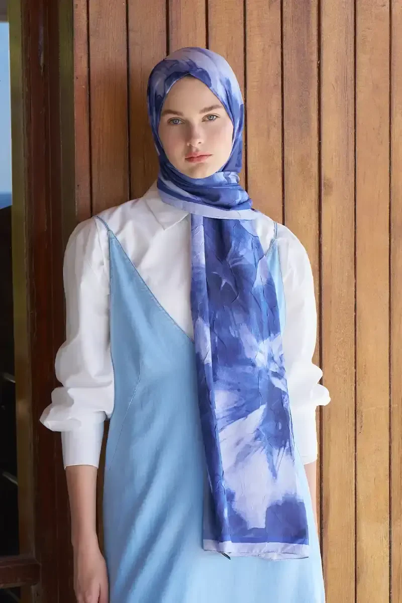 Kübra Kuş Live Garden Desen Şal - Lacivert