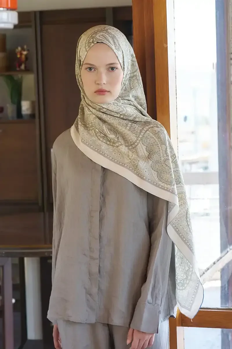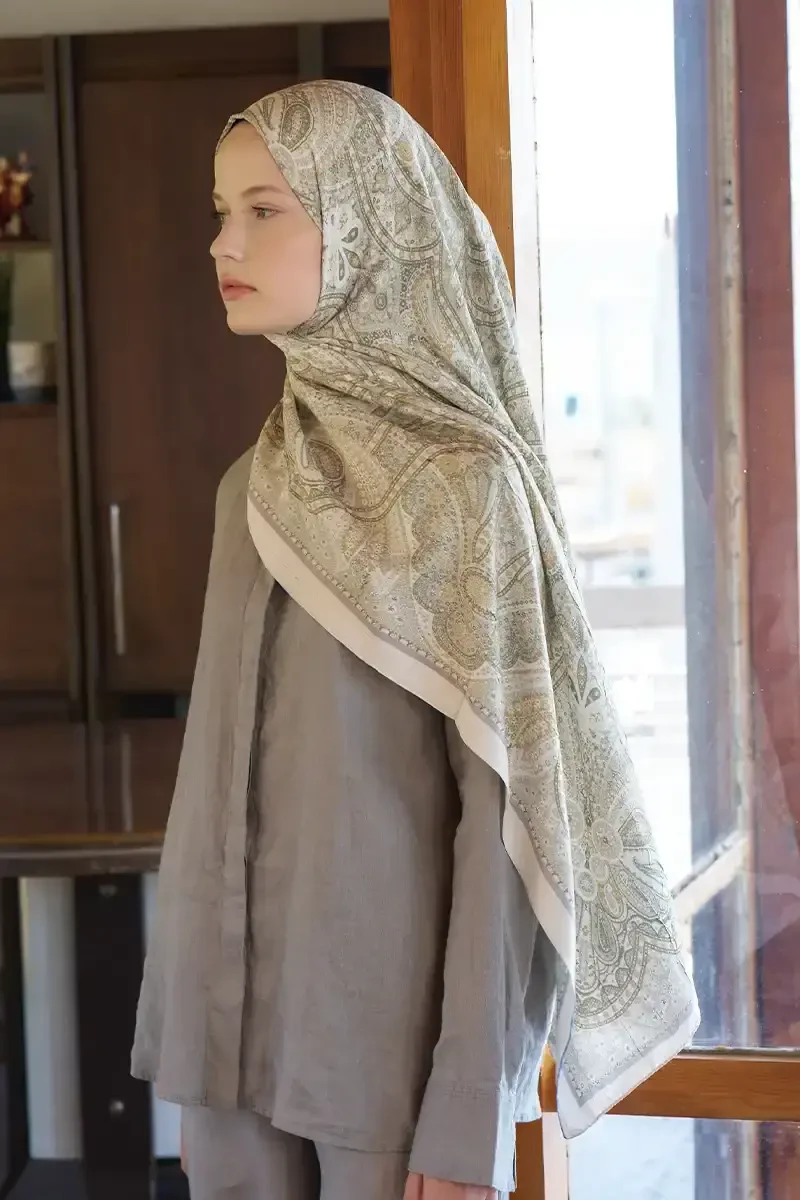 Live Siena Desen Şal - Yağ Yeşili