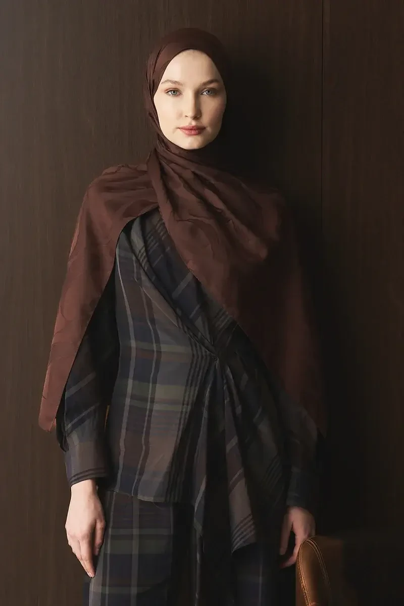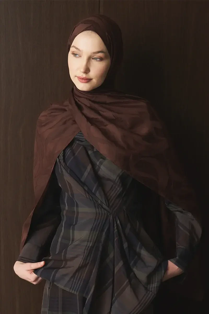 Naiya Jakar Şal Wave Desen - Kahverengi