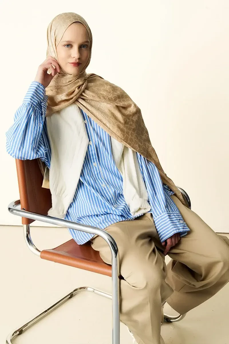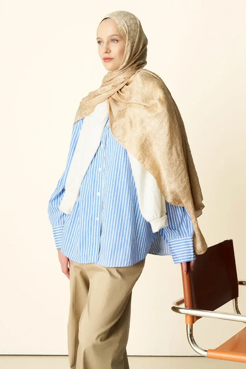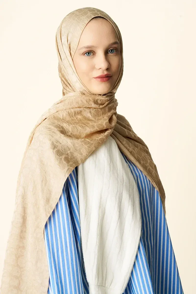 Premium Jakar Şal Halka Desen - Latte
