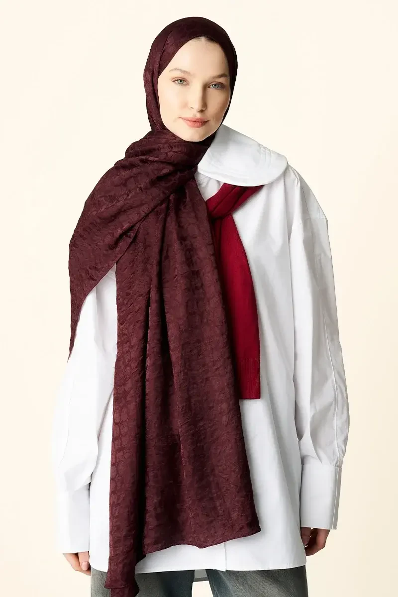 Premium Jakar Şal Halka Desen - Vişne Çürüğü