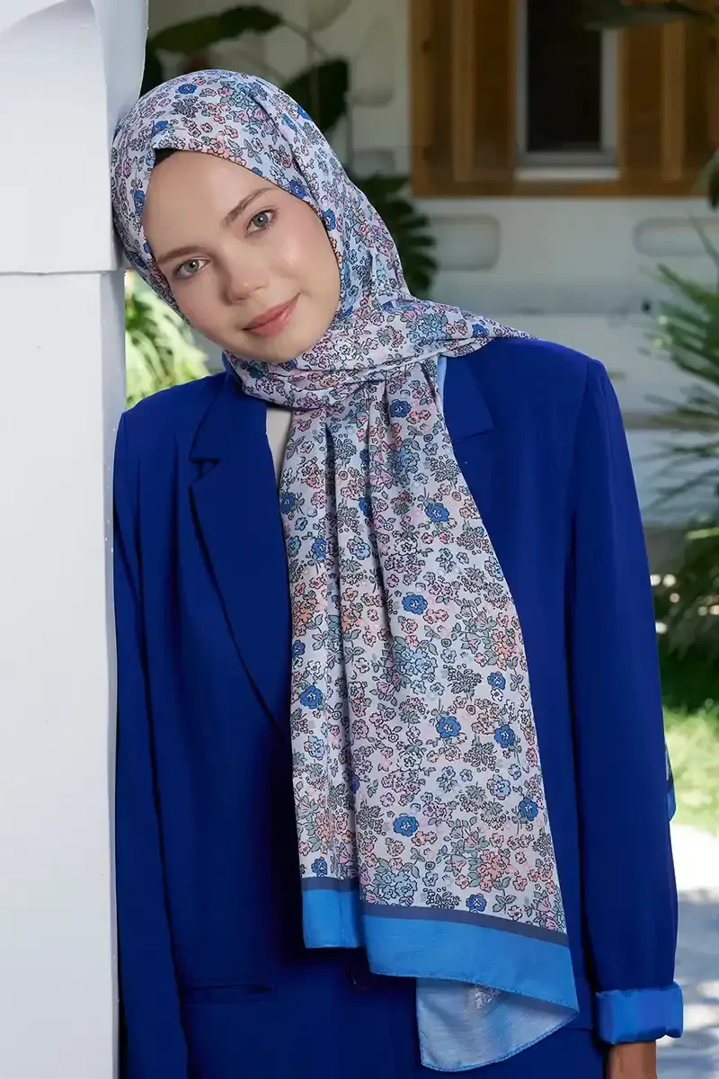 Seremoni Koleksiyonu Daisy Desen Şal - İndigo