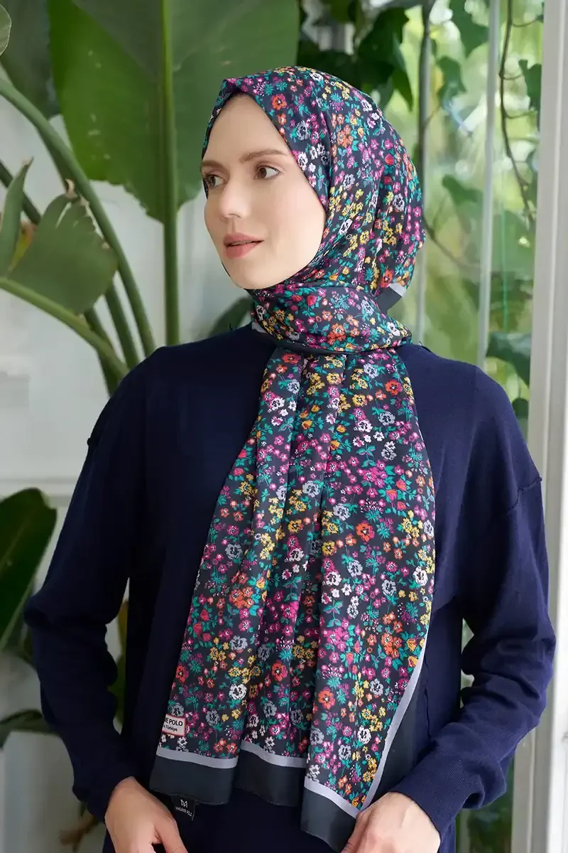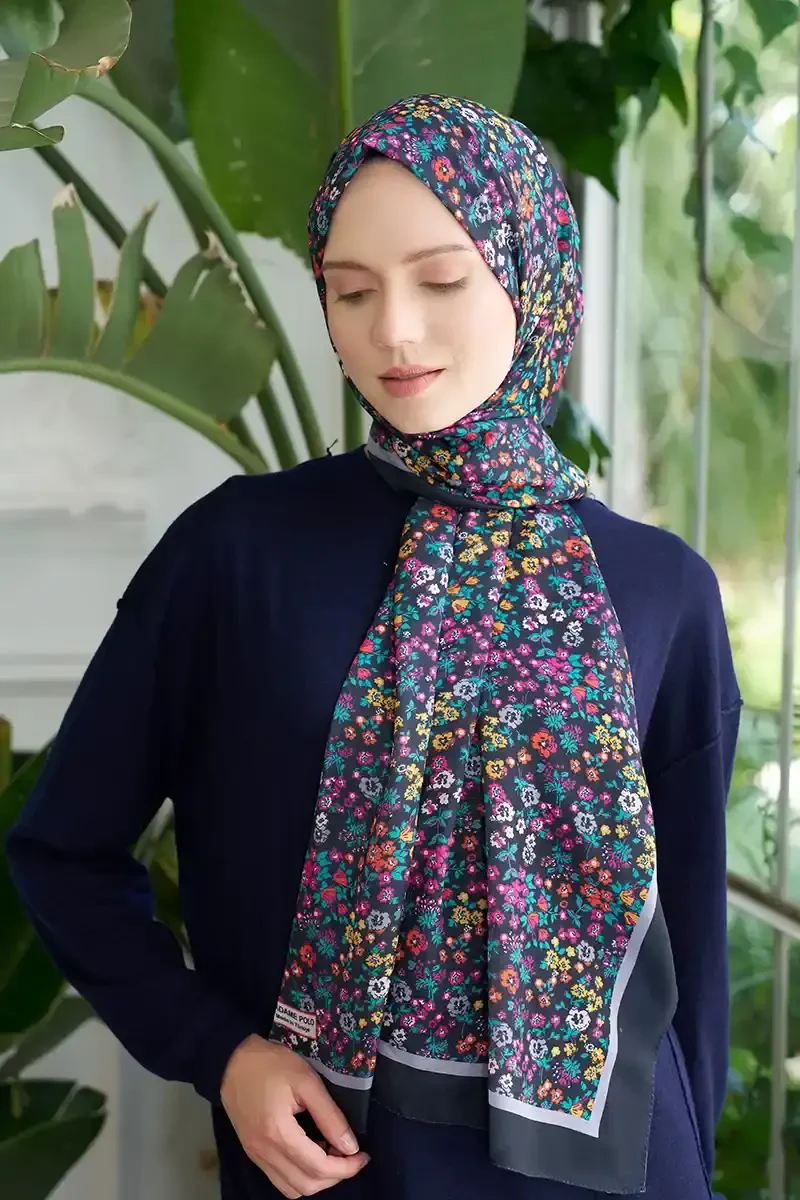Seremoni Koleksiyonu Daisy Desen Şal - Siyah/Renkli