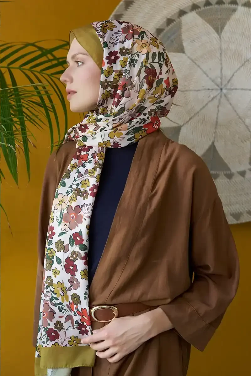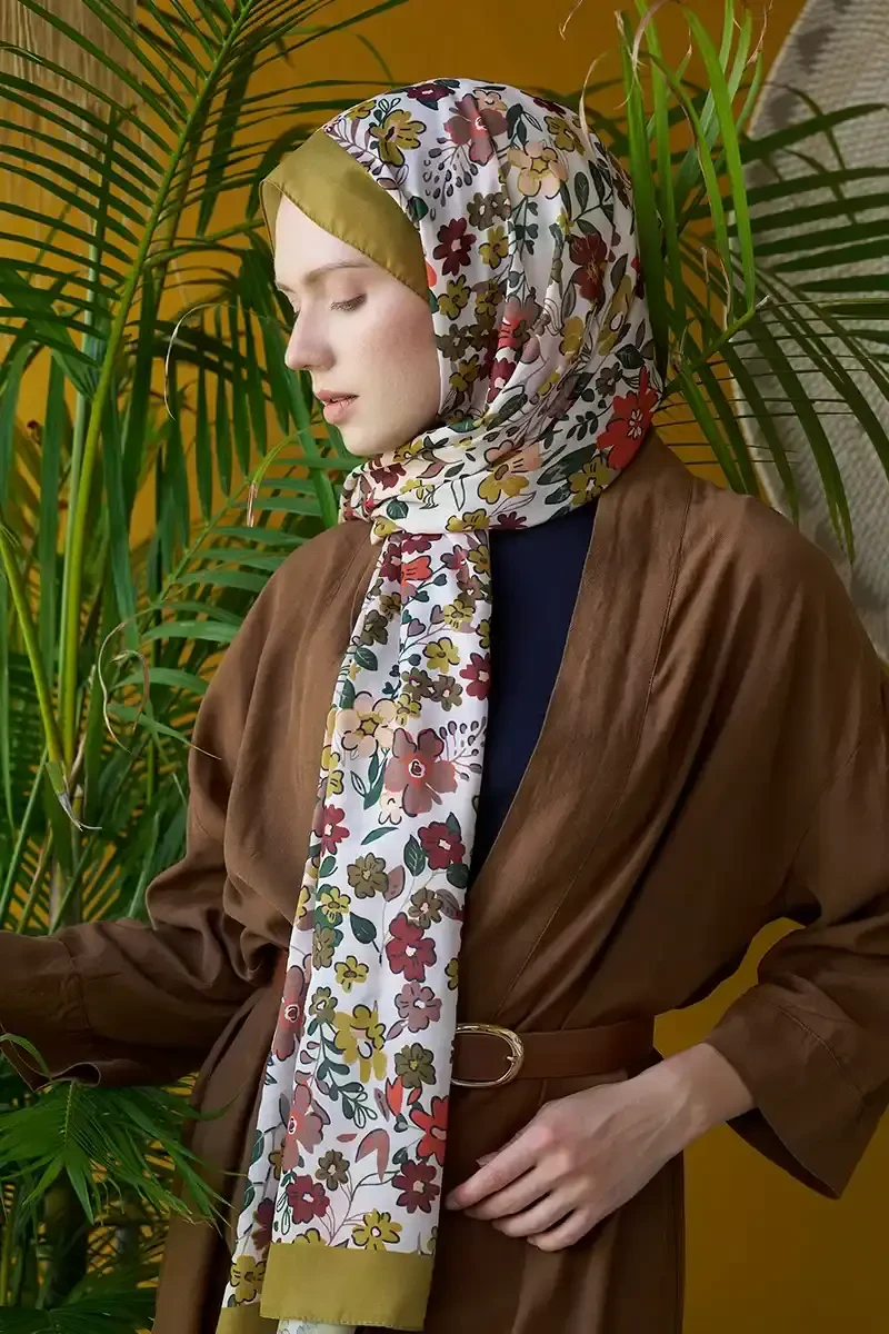 Seremoni Koleksiyonu Flora Desen Şal - Yağ Yeşili