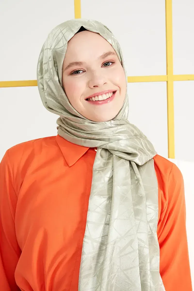 Silky Jacquard Italian Hijab Line Pattern - Soft Green