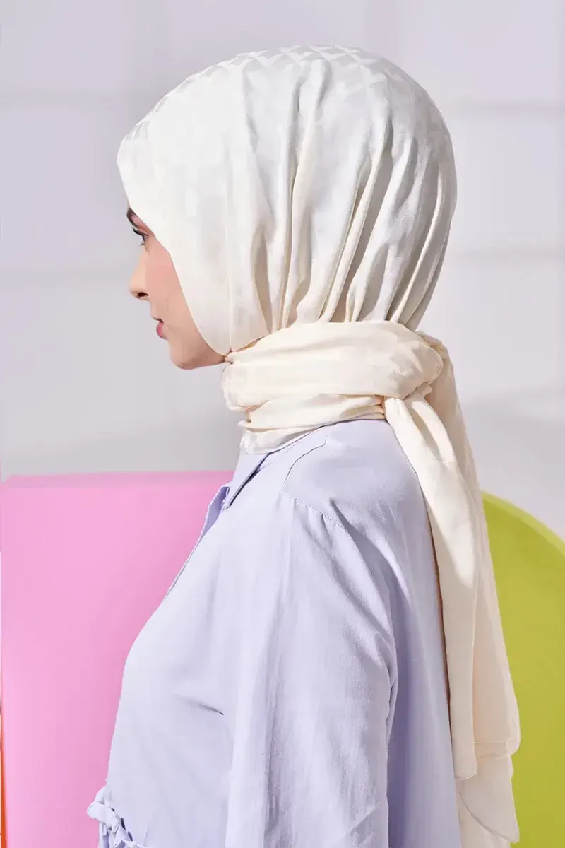 Silky Jacquard Lara Hijab Geometric Pattern - Cream